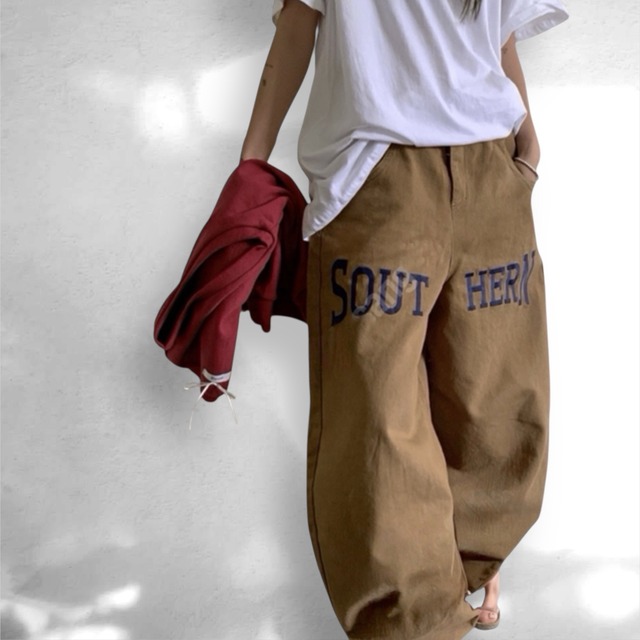 ※価格は税込価格となります。 ※20,000円以上のお買い上げで《送料無料》 【商品詳細】 レタリング刺繍がポイントのバルーンパンツは、個性的なデザインであなたのスタイルを引き立てます!ユニセックス仕様のため、さまざまな体型やセンスにフィットし、ルーズなシルエットでカジュアルスタイルの主役に!ルーズ感とファッション性を兼ね備えたこのパンツで、自由なファッションを楽しんでください! 【カラー】 ・ブラウン 【サイズ展開(㎝)】 ・S ウエスト73/ヒップ108/股上34/股下76/わたり68/裾周り48 ・M ウエスト78/ヒップ110/股上36/股下77/わたり70/裾周り48 【素材】 ・デニム、綿 【発送につきまして】 ご入金完了後、順次対応させて頂きます。 概ね土日祝日を除く、3日~1週間程度を目安に発送手続きをさせて頂いておりますが、商品不備による入れ替えや物流状況によって前後・遅延する場合が御座います。 予めご了承頂きますようお願い申し上げます。 【ご希望商品お取り寄せについて】 在庫が無くなった商品につきまして、ご購入のご希望がございましたらお取り寄せ可能な商品もございますので、遠慮なくお問い合わせくださいませ。 【お支払い方法】 ・クレジットカード決算 ・銀行振込 ・各種キャリア決済 ・コンビニ払い ・Amazon pay ・後払い(pay ID) 注意事項 ・タイミングによっては 商品在庫切れにより、 注文キャンセルとさせていただく恐れもございますので、予めご了承くださいませ。 ・光の入り具合や、お使いのパソコンやスマートフォンなどのモニター設定により、商品写真のお色が実物と異なる場合がございます。 ・採寸箇所実寸(平置き)より【約0.5〜1.5cm】程度は、誤差の許容範囲とさせて頂いております。予めご了承の程お願い申し上げます。 ・ご注文後のお客様都合(サイズが合わないイメージと違ったなど)でのキャンセルは承っておりません。予めご了承くださいませ。 その他、ご不明な点がございましたらショッピングガイドをご覧いただき お気軽にお問い合わせくださいませ。